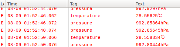 ![]() 温度が4秒周期、大気圧が2秒周期になっていることが、確認できた。 |