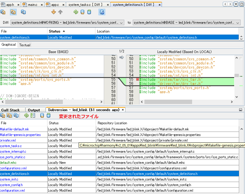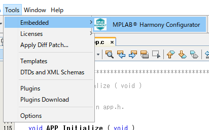 Lチカをするには出力ポートとタイマーの設定が必要です。 Harmony Cofigrator を起動します。 ![]() Timerの設定 System Serviceの中にあるTimerを選びます。 ![]() LEDはRB7に接続します。 ![]() これを保存します。 Harmony Configratorがどのようにファイルを作成したかをsubversionで確認します。 ![]() をクリックします。 ![]() Harmony Configuratorがタイマーに必要な宣言や関数の定義を自動でやってくれます。これって凄く便利です。 |