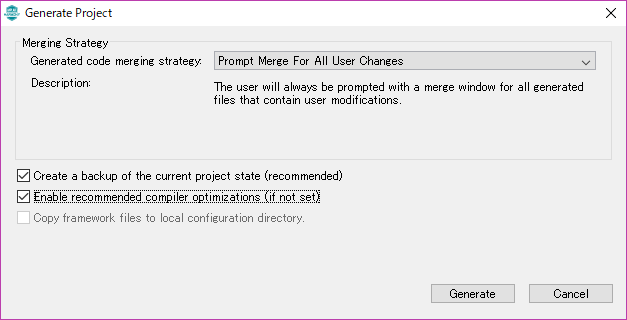 [Generate]ボタンをクリックします。 これで空の処理をするプロジェクトができました。 subversionでリポジトリの登録をしてください。 |