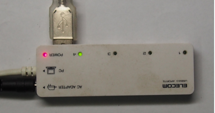 今やっているデバイスでも頻度は少ないけれど同じような現象があったので、USBの電源周りか?ということで5Vを供給するHUBを使ってみました。
