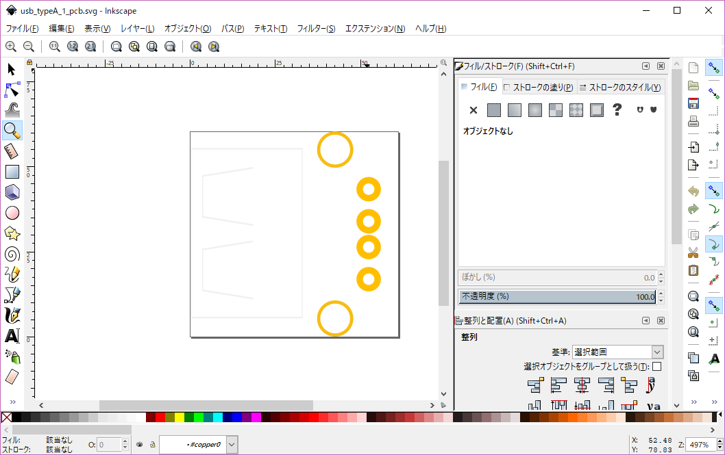 基板を作るのは本業ではありません。回路設計、ソフト設計がほぼ終わったので基板をどうするか?誰かパートナーを見つけてやってもらおう。と思っていたのですが思うようにいきません。ネットで、回路初心者がFritzingで基板発注してみたというのがありました。これを参考にしてfusion PCBで発注して、10日くらいで中国から送られてきたのがこれ。 ![]() 失敗が1つありました。 USBタイプAコネクタのピンが2個開いていない。 だけ(?)でした。一番これがうまくいくか不安がありました。なぜならこれは自分で作成した部品だったからです。穴がなければ開けるしかない。0.8ミリのドリル歯をダイソーで買ってきて穴あけです。案外難しいです。 基板にバリなどはなくきれいにできています。 費用は4.9ドルとDHLの運賃が20ドルです。 こんな安くできてしまうとは!!!!! 早速部品を実装してみると、パターンが剥げるような問題は全然ありません。動作は問題なしです。 基板作成にやること 基板のパターン設計をする Fritzingを使って行いました。Fritzingの入手やインストールの方法はググってください。 ここで問題なのが部品です。Fritzingはブレッドボードでも配線図ができることを売りにしているのか?例えばUSBコネクタの部品はありますが、秋月さんのDIP化パーツのように基板に乗っています。直に基板に取り付ける部品がありません。 部品を作る 部品をつくるにはInkscapeを使いました。Inkscapeの入手やインストールの方法はググってください。 例えば、USBタイプAのコネクタは、 ![]() このように作ります。 ピンの間隔が2.5mm-2.0mm-2.5mmとなっているので注意します。 画像ができたら、Fritzingでこのデータを登録します。 部品ができたら、Fritzingでパターンの設計をします。 Fusion PCBで発注する ユーザー登録の画面で郵便番号の確認の画面から先に進めませんでしいた。(わけのわからないDHLの画面が出ている。)メールアドレスとパスワードを入力してあれば、トップページから入り直し。次にログイン操作をします。ユーザーIDとパスワードを入力します。これ未登録になっている住所などの登録をします。(登録してからしばらくたっているので記憶が曖昧) |