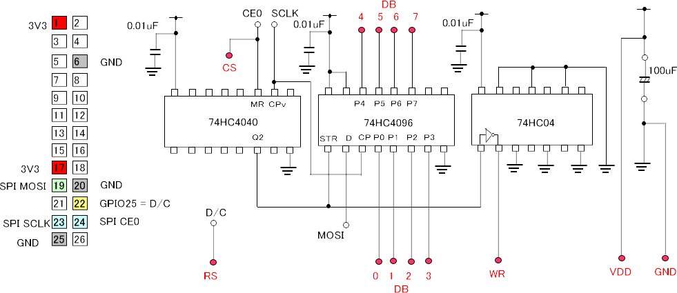 aitendoさんでL32-2PYを購入しました。こじ研(小嶋研究室)さんの記事を参考にさせていただきました。結果は、ほぼうまくいきました。しかし、不可解な不具合がありました。![]() しかし、問題がある。 電源をいれて最初に sudo ./lcd (lcdはCで作成した実行ファイル) をやると上記のちゃんとした表示。 もう一度、 sudo ./lcd をやると次のような画面。 ![]() なんだ、こりゃ! 同じプルグラムを実行させて1回目と2回目以後の表示がちがう。2回目以後はダメ表示。なんでだ? 結局原因不明です。 よくありそうなこと、 ソフトでいえば初期化をきちんとしていない。 たとえば、構造体の初期化であるデータを初期化し忘れたけれど、確率でほぼうまくいく。ときどき不正なデータになって不具合となる。 ハードでいえば配線し忘れたポートが不定になるがたまたまうまく動いてくれる。ただしときどき誤動作する。 などが考えられます。 現状を検証するよりもう一度作り直してしまえ!どうせならデータバス8ビットでどうなるかやってみよう。シフトレジスタを使わないでIOエクスパンダをつかったらいいかも?と思ったのですが、結局シフトレジスタの方がシンプルでデータ送信の効率が良さそうということでシフトレジスタにしました。(IOエクスパンダの方がシフトレジすらより安いのですが、残念です。)8ビットなら今までよりシフトレジスタ1個が節約できます。シフトレジスタ買ったとき300円くらいです。 |