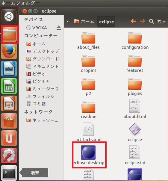 | Eclipseを起動するのに、ターミナルを開いて、 ./eclipse/eclipse & と毎回やるのは面倒です。 ランチャーに登録できればいいのですが、手作業でEclipseをインストールするとできません。 sudo apt-get install でやればできるのですが....... できます! eclipseのフォルダーに次のファイルを用意します。 ファイル名:eclipse.desktop ファイルの内容: [Desktop Entry] Type=Application Name=eclipse GenericName=eclipse shortcut Icon=/home/user/eclipse/icon.xpm Exec=/home/user/eclipse/eclipse Terminal=false Name[ja_JP]=eclipse.desktop /home/userのところはお使いの環境で書き換えてください。 ランチャーのホームフォルダーでeclipseのフォルダーに移動します。 eclipse.desktopをダブルクリックします。 ![]() Eclipseが起動します。 Eclipseのアイコンを右クリックすると固定できます。 ![]() JDK6でもダメなときがあります。 ecilpse.ini -startup plugins/org.eclipse.equinox.launcher_1.3.0.v20130327-1440.jar --launcher.library plugins/org.eclipse.equinox.launcher.gtk.linux.x86_64_1.1.200.v20140116-2212 -product org.eclipse.epp.package.cpp.product --launcher.defaultAction openFile -showsplash org.eclipse.platform --launcher.XXMaxPermSize 256m --launcher.defaultAction openFile --launcher.appendVmargs -vm /home/user/jdk7/bin/java -vmargs -Dosgi.requiredJavaVersion=1.7 -XX:MaxPermSize=512m -Xms512m -Xmx512m /home/user/jdk7のところはお使いの環境により書き換えてください。 これはjdkのパスをeclipseに教える内容です。 |