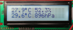 | 3つのセンサーで温度を計測した結果です。 上の行が湿度センサーによる温度と湿度の表示。 下の行が大気圧センサーによる温度と大気圧の表示。 ![]() 温度は1.7℃も違います。 たぶん湿度センサーのほうが正しいかな? また気圧については、晴天のときは993hPaでした。本日曇りで896hPaです。 |