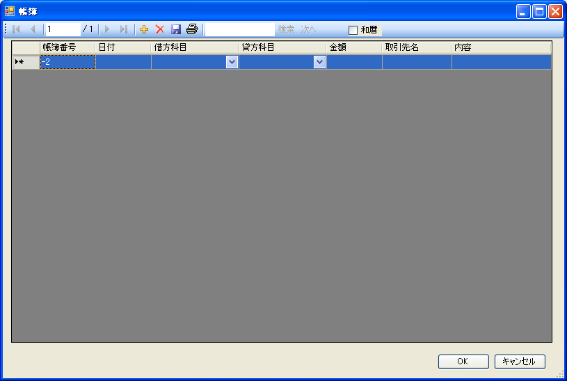 | 決算をするための歳入項目と歳出項目が決まったら帳簿へ入力します。 [帳簿]ボタンをクリックします。 ![]() 最初は、何もない状態です。 いや違います。 帳票番号に-1が入っています。 これはデータベースで連番でとってくれいる番号です。自分で番号を入力することはできません。データを保存すると連番になった番号が割り振られます。アクセスなどと違っています。とりあえずこれは気にしないでください。 日付を入力します。 2011/6/12 とタイプします。 しかし、毎回 2011 とタイプするのは面倒です。 6/12 とタイプしてみると、 2011/6/12 となります。 年度を省略したときは、パソコンの時計をみて年を付加してくれます。 これは便利ですが、翌年の1月過ぎにまとめてやろうとすると前年をタイプしなくてはならいので、12月以前に入力することをお勧めします。 H23.6.12 とHをつけて和暦で入力することもできます。 入力した結果は西暦の表示だけです。 Ver1.3 気が変わりました。 和暦に対応しました。 和暦のチェックボックスをONにすると、和暦での入力、表示ができます。 和暦がチェックされていると、 簡単入力 4月1日を入力するには 4/1 4.1 4-1 でできます。 平成の年度を付けるには 23/4/1 23.4.1 23-4-1 でできます。お好きなように入力してください。 表示は、 23-4-1 と均衡通帳と同じ形式で表示されます。 和暦がチェックされていないと西暦表示で、 2011/4/1 と表示されます。4桁で表示されますので、間違う人はいないと思います。!(^^)! 現金でコピー用紙を980円買ったとします。 これは歳出になります。 貸方科目 2-5 印刷費 借方科目 0-1 現金 となります。 この入力は、プルダウンコンボボックスのタブをクリックすれば科目が表示されます。しかし、何度もやっているとマウスで操作するよりキーボードの方が速くできます。 やり方はテンキーで2-5Enterと打てば、2-5 印刷費が選択されます。 次に980を入力します。 取引先、内容は必要に応じて記入してください。記入しておくと、領収書や通帳の照合するときに役立ちます。まとめてやるとこれを記入する気力がなくなってしまいます。こまめに入力することをお勧めします。 ついでに歳入の例です。 町会費が40000円集まり、それを預金した例も一緒に示します。 ![]() このように帳簿に通帳や入金や出金を記録します。 保存するにはフロッピーのアイコンをクリックします。 [OK]ボタンをクリックすると自動で保存されます。 |