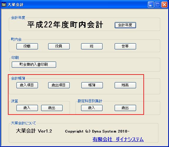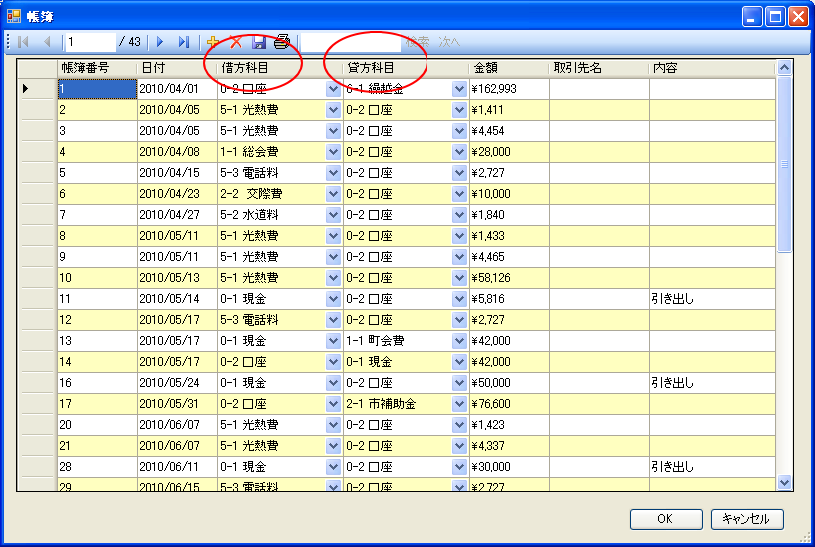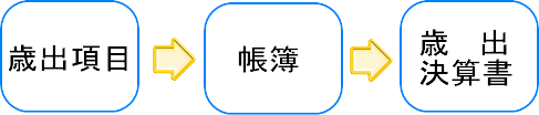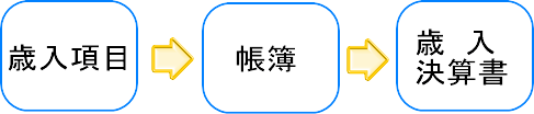 | 機能の理解のため、データの削除、変更、新規追加は行わないでください。 決算をするには以下のボタンの操作が必要です。 ![]() 歳入の決算を概略でしめすと、 ![]() 歳入の決算書は、決算グループの[歳入]ボタンをクリックするだけでできてしまいます。 ![]() お試しください。 これだけで歳入の決算書ができてしまいますので、データのご記入などがあったらそれを修正して、すぐに決算書ができてしまいます。 歳入の決算書を出すために必要な入力は、 上記決算書の科目に相当する部分を入力するのが、歳入項目です。 [歳入項目]のボタンをクリックします。 ![]() 決算書で、 1 会費 になっているとろこは 集計項番 1 勘定項番 0 となります。 1-1 町会費は 集計項番 1 勘定項番 1 となります。 このような関連付けになりますので、理解してください。 また、歳入科目名に 6-1 繰越金 となっていますが、このような記述にしたほうがわかりやすく入力にべんりなので真似してください。 次に歳出の決算です。 歳出の決算を概略でしめすと、 ![]() 歳出項目が歳入項目と入れ替わっただけです。 考え方はまったく同じなので割愛します。 次に帳簿です。 帳簿は歳出項目、歳入項目が決まってないと入力できません。帳簿を入力する前にこれらをきちんと決めておいてください。 ![]() 帳簿の 借方科目に歳出項目 貸方科目に歳入項目 が反映されていることがわかります。 この関係をしっかり覚えてください。 勘定科目別集計グループ、残高ボタンは実務編で説明する予定です。 |