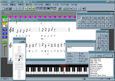いろいろな編集ツールを使ってデータの編集が容易にできます。もちろん、MIDIファイルも作成できますので、自作の曲を作ってホームページで公開しては、いかがでしょうか? |