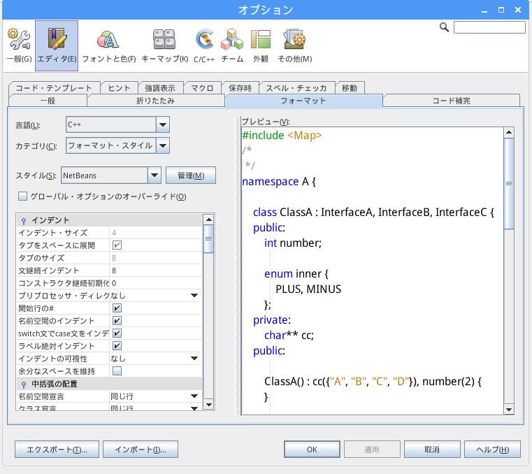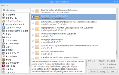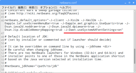 subversionのインストール NetBeansではバージョン管理ソフトsubversion使えます。 ![]() 変更した箇所が簡単にわかります。 また、今日は勘違いでコードを書いてしまった。とりあえず昨日の状態に戻す。 などいろいろ便利です。 インストールは、 [メニュー]-[設定]-[Add / Remove Software] 検索:subversion ![]() OKボタンでインストール完了です。 NetBeansの表示される文字が汚い before ![]() /home/pi/netbeans/etc/netbeans.conf を編集します。 ![]() 46行付近にあるオプションの変更をします。行の最後に、 -J-Dawt.useSystemAAFontSettings=on を追記します。きれいになった気がします。 after ![]() コード入力のウィンドでもこの効果はあります。 コーディングスタイルを登録する 個人ならまったく自由。組織ならそれなりのコーディングルールを決めて担当者はそれに従う。(といいながら守れずに下手なコードを量産してることもあるようです。) [ツール]-[オプション]でオプションを起動します。 ![]() 最初にスタイルを選んで、次に括弧の位置とか細かなことを設定するの効率的です。 これを設定しておくと、自分の思ったように自動的に括弧が入ったりタブ位置が決まったり入力の手数が減ります。これは他の開発環境でもよくある機能です。 この会社のコーディングルールは美しくない。と思いながらそれに合わせてコードを書く。こんなことしなくても、 自分流で書く デバッグして検証する 自動整形機能でこの会社のルールにする ということができます。 また、サンプルプログラムなどいろいろな書き方があったりします。それをいったん取り込んで自動整形機能で見やすくすることができます。 |