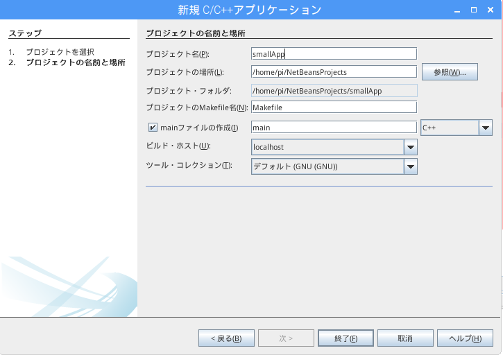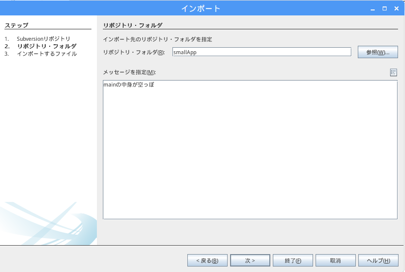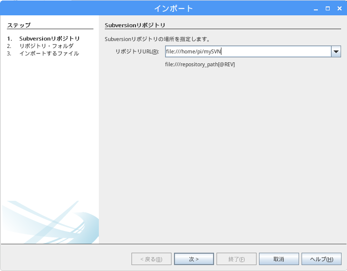 練習プログラムはお約束の Hello world! を表示するプログラムから始まってLED点滅をさせるまでを実装します。その過程でsubversionによるバージョン管理をします。これは便利ですよ! [ファイル]-[新規プロジェクト] C/C++アプリケーション を選択して新規プロジェクトを作成します。 ![]() 中身のないmain()が作成されています。 ビルドします。当たり前ですがエラーはでません。 プログラムの中身のない状態でsubversionの設定をします。 LXTerminalを起動します。 最初にSubversionでリポジトリの場所をmySVNとします。snvという名前のフォルダーはいくつかあるので間違わないようにmySVNにしました。 pi@raspberrypi:~ $ svnadmin create mySVN このコマンド実行後に、 /home/pi/mySVN が作成され必要なファイルなどが配置されています。 [チーム]-[Subversion]-[リポジトリにインポート] を実行します。 ![]() [次 >] ボタンをクリックします。 ![]() メッセージを書きます。 [次 >] ボタンをクリックします。 ![]() とりあえずこのままで[終了]ボタンをクリックで終わりです。 何かソースに変更を加えます。 ![]() 左に変更があったことを示す青のマークが付きます。 いろいろ変更をしていると、どこを変更したかわからなくなってしまうことがあります。そんなときこの機能は大変便利です。 |