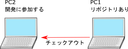 2回目以降はアップデートです。新たに開発に参加する場面を考えるとわかりやすいと思います。![]() PC1は一人で開発していました。 ひとつの機能ができあがるとSubversionを更新しています。納期に間に合わない不安が出できて応援を頼みました。 応援者はPC2でPC1のリポジトリからチェックアウトをします。これだけでPC2にPC1と同じプロジェクトが構築れます。 更新の記録もわかりますのでPC1の開発者に教えてもらうことを最少にすることができます。 インポートしたPCはこれでSubversionが使えると思ってしまいがちですが、Subversionの機能が使えません。 ![]() Subversionのメニューがディスエーブルになっています。 インポートしたPCでもSubversionの機能を使えるようにするためチェックアウトします。 [SVN]-[Get form Version Control] ![]() Version Control でSubversion を選択。 Repositoryを選択。 [CheckOut]ボタンをクリック。 ![]() 展開するフォルダを指定します。 [OK]ボタンをクリックします。 ![]() ほとんど何もしないで[OK]ボタンをクリックしてます。