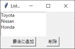 アイテムの追加するためにbtnAddを実装します。また、アイテムを削除するためにbtnDelを実装します。それぞれ簡潔なコードなので参考になれば幸いです。