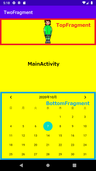 アプリはMainActivityにTopFragmentとBottomFragmentを実装することで実現します。フラグメントにすることによりオブジェクトの独立性を高めソースがすっきりします。しかし...