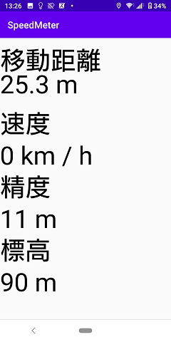 GPSを使った現在位置の表示では現在位置の緯度経度を取得して地図上に表示をしました。 現在位置を取得する方法としてFusedLocationProviderClientを使って実現しました。これは位置情報をGPS,WiFi,携帯基地局からの位置情報で算出します。一番正確なのはGPSです。しかし、バッテーリーの消耗が多いいです。位置の精度が大雑把でよいアプリってなんだ?よくわかりません。やはりGPSを使って正確に検出できないと.... 作ったアプリはこれ! ![]() 移動距離:計測を開始してから移動した距離。 速度:現在の速度。 精度:GPSの位置検出の精度。小さいほど正確。 標高:海面からの高さ。 グーグルマップでは位置情報をマップにわたすだけですが、今度は位置がわかっただけでは数字を表示してもよくわならないです。位置情報を2つ使えばその間の距離がわかります。この距離を出す方法は地球は球体であると仮定した計算方法です。実際は楕円体です。しかし、これは計算が面倒なので球体といました。 2地点間の距離がわかれば、移動時間から速度が算出できます。最初はタイマーで時間を計って速度をだしていました。しかし、自分で計算しなくても緯度経度の取得と同様に取得できます。 精度はどうか? 移動距離:車で4キロ走って、トリップメータと比較すると同じです。 速度:車の速度計と比較数するとほぼ同じです。 標高:以前国土地理院のサイトで調べた当地の標高は175mです。しかし、表示は220mです。 ソースファイル MainActivity.java SpeedView.java AndroidManifest.xml <uses-permission android:name="android.permission.ACCESS_FINE_LOCATION" /> <uses-permission android:name="android.permission.ACCESS_COARSE_LOCATION"/> それと <meta-data android:name="com.google.android.gms.version" android:value="@integer/google_play_services_version" /> の設定が必要です。 |